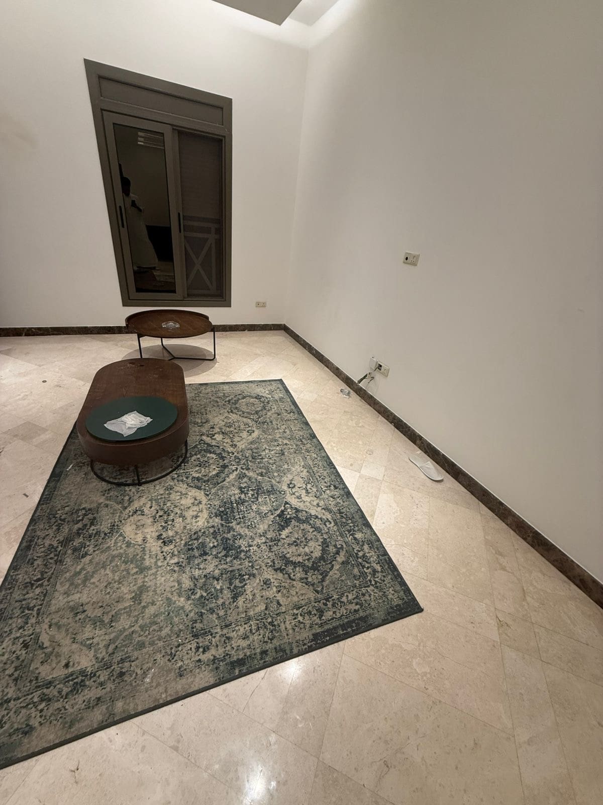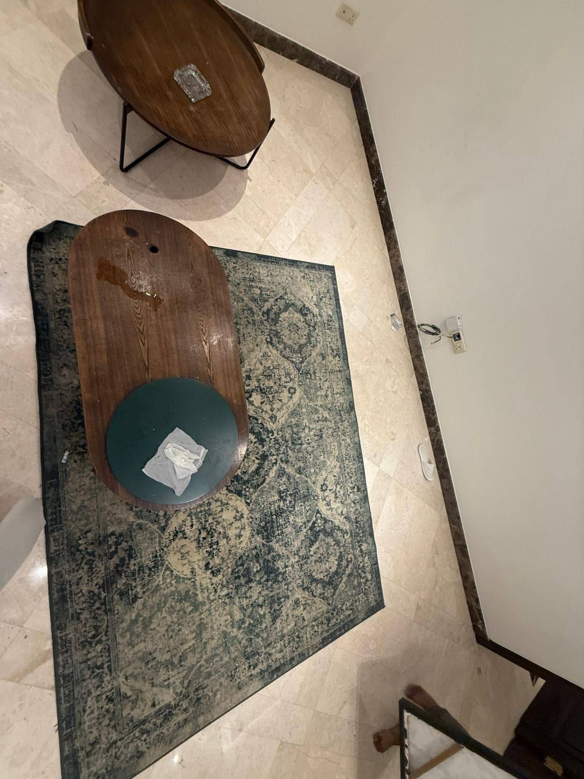 طاوله كوفي فيها حرق بسيط وطاوله جانبيه