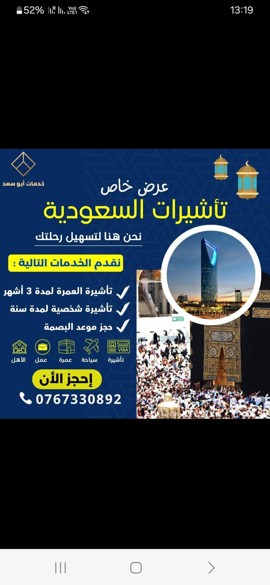 متوفر فيز اقامات للمملكة العربية السعودية جميع المهن