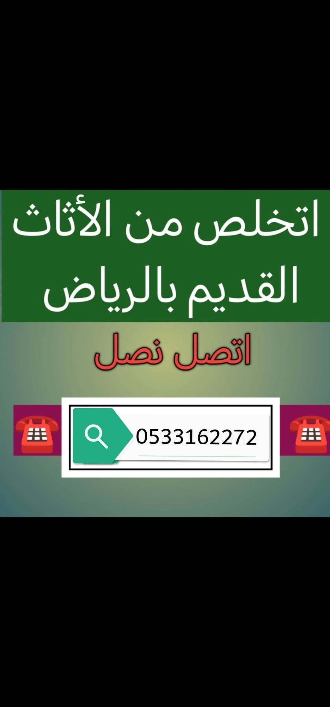 عندك أثاث تالف وتبي تتخلص منه بالرياض؟ لا تشيل هم، تقدر تتواصل على الرقم 0533162272 ويجيك فريق مختص يستلم الأثاث التالف من باب بيتك بكل سهولة وسرعة، سواء كان كنب، سراير، دواليب، طاولات أو حتى أجهزة كهربائية ما عاد تستخدمها، الخدمة مريحة وتساهم في الحفاظ على نظافة المدينة، وبدل ما ترميها في أماكن عشوائية وتتسبب في تلوث بصري أو مخالفة، خلك نظامي وساهم في تحسين البيئة حولك، الخدمة متاحة لجميع أحياء الرياض وتشمل السحب المجاني أو برسوم رمزية حسب الحالة، فقط اتصل وخلاص وارتاح من العناء والتلف اللي ما له مكان، وفر وقتك وطاقتك وخلي المهمة عليهم، الرقم مرة ثانية 0533162272 اتصل الآن وخلّص أمورك بدون تعب📢 هل تبحث عن خدمة رمي الأثاث القديم بالرياض؟ 📦