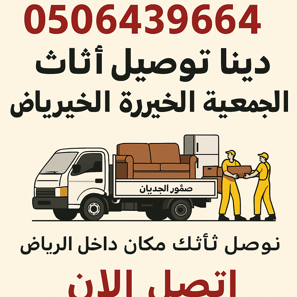 ☎ 0506439664 / تبحث عن دينا توصيل أثاث إلى الجمعية الخيرية بالرياض؟ أنت الآن في أفضل مكان نقدم لك خدمة متكاملة لنقل وتوصيل الأثاث المستعمل والقديم إلى الجمعية الخيرية بأعلى جودة وأسرع وقت ممكن / اتصل الآن على ☎ 0506439664 وحجز موعدك سيتم خلال دقائق / نحن نغطي كل أحياء الرياض شمال شرق غرب جنوب ووسط / حي الياسمين حي النرجس حي العقيق حي الملقا حي الصحافة حي اليرموك حي الملك فهد حي المروج حي الروضة حي قرطبة حي الخليج حي النهضة حي العزيزية حي البديعة حي السويدي حي لبن حي الشفا حي المونسية حي المرسلات حي الربيع حي الغدير حي المصيف حي الشهداء حي الجزيرة حي الحمراء وكل مكان داخل الرياض / خدماتنا متوفرة على مدار 24 ساعة / فريقنا مجهز ومؤهل لنقل الأثاث الثقيل والخفيف بكل دقة وأمان / نحن نقوم بفك الأثاث وتركيبه عند الحاجة / نغطي جميع أنواع الأثاث من غرف النوم المطابخ الأرائك المجالس الطاولات الكراسي المكيفات الأجهزة المكتبية وكل أثاثك المستعمل / نحن نحرص على أن يصل الأثاث بحالة ممتازة إلى الجمعية الخيرية لتصل للأسر المحتاجة بسرعة وأمان / اتصل الآن ☎ 0506439664 وسيصل فريقنا إليك أينما كنت في شمال الرياض أو شرق الرياض أو غرب الرياض أو جنوب الرياض أو وسط الرياض / نحن نغطي كل الأحياء ونعمل على راحة العميل وتسهيل عملية التبرع بأثاثه / خدماتنا تشمل نقل جميع أنواع الأثاث المستعمل والتالف والقديم بكل احترافية / نحن نقدم أفضل فريق نقل مجهز بالدينا والمعدات اللازمة لتسهيل النقل / اتصل ☎ 0506439664 وسيتم حجز أقرب موعد لك فوراً / فريقنا يعمل بسرعة وكفاءة عالية لضمان وصول الأثاث بدون أي تلف / نحن نغطي كل أحياء الرياض شمال شرق غرب جنوب ووسط / حي الياسمين حي النرجس حي العقيق حي الملقا حي الصحافة حي اليرموك حي الملك فهد وكل مكان داخل الرياض / نحن نوفر خدمة التوصيل للأثاث من البيت أو المكتب أو الفلة مباشرة إلى الجمعية الخيرية / نحن نغطي غرف النوم والمجالس والمطابخ والأرائك والطاولات والكراسي والمكتبي والمكيفات وكل أنواع الأثاث المستعمل / اتصل ☎ 0506439664 وسنكون عندك خلال دقائق لتقديم الخدمة / نحن نحرص على رضا العميل وتقديم خدمة مميزة وسريعة / كل خدماتنا متوفرة على مدار 24 ساعة دون توقف / فريقنا مجهز بأحدث المعدات والأدوات لحماية الأثاث أثناء النقل / نحن نغطي جميع الأحياء داخل الرياض / خدماتنا تشمل كل شيء من نقل الأثاث الكبير والصغير وفك وتركيب الأثاث عند الحاجة / نحن نضمن وصول الأثاث بحالة ممتازة وسليمة إلى الجمعية الخيرية / اتصل ☎ 0506439664 الآن لتحديد موعد وتأكيد الحجز بسهولة / نحن نغطي كل الأحياء شمال شرق غرب جنوب ووسط الرياض حي الياسمين حي النرجس حي العقيق حي الملقا حي الصحافة حي اليرموك حي الملك فهد حي المروج حي الروضة حي قرطبة حي الخليج حي النهضة حي العزيزية حي البديعة حي السويدي حي لبن حي الشفا حي المونسية حي المرسلات حي الربيع حي الغدير حي المصيف حي الشهداء حي الجزيرة حي الحمراء وكل مكان داخل الرياض / نحن نقدم خدمة شاملة من التوصيل إلى الجمعية الخيرية وحتى ترتيب الأثاث في مكانه الجديد / اتصل ☎ 0506439664 وسيصل فريقنا إليك فوراً / نحن نغطي كل أنواع الأثاث من غرف النوم والمجالس والمطابخ والأرائك والطاولات والكراسي والمكتبي والمكيفات / خدماتنا متوفرة على مدار 24 ساعة / فريقنا محترف ومدرب على نقل الأثاث الثقيل والخفيف بأمان / اتصل ☎ 0506439664 الآن لتحديد موعدك وسيتم تنفيذه بأفضل شكل ممكن / نحن نغطي كل الأحياء داخل الرياض شمال شرق غرب جنوب ووسط / حي الياسمين حي النرجس حي العقيق حي الملقا حي الصحافة حي اليرموك حي الملك فهد وكل مكان داخل الرياض / نحن نحرص على توصيل الأثاث إلى الجمعية الخيرية بسرعة وأمان / اتصل ☎ 0506439664 وسيصل فريقنا إليك أينما كنت / نحن نقدم خدمة نقل الأثاث المستعمل والتالف والقديم إلى الجمعية الخيرية بكل احترافية وسرعة / نحن نوفر دينا مجهزة وفرق عمل محترفة للتعامل مع كل أنواع الأثاث / اتصل ☎ 0506439664 الآن وسيصل فريقنا إل