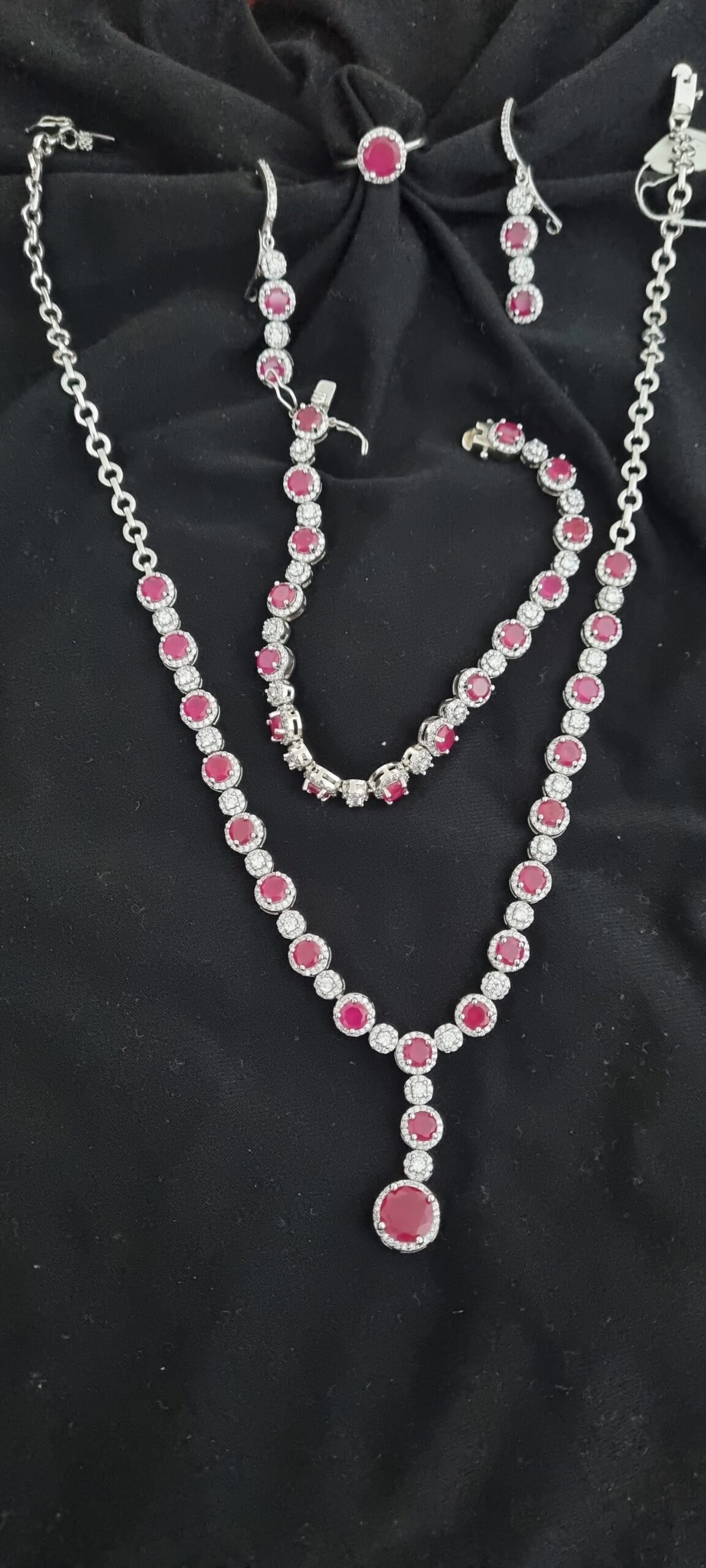 مكون من زوج من الاقراط مع خاتم وسلسال يد وسلسال رقبة