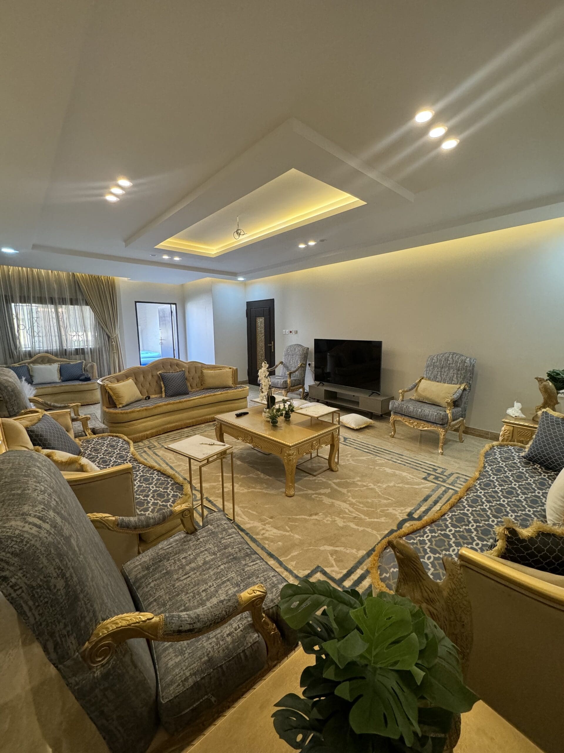 مع طاولاته وحدة كبيرة في الوسط وثنتين خدمة كورنر