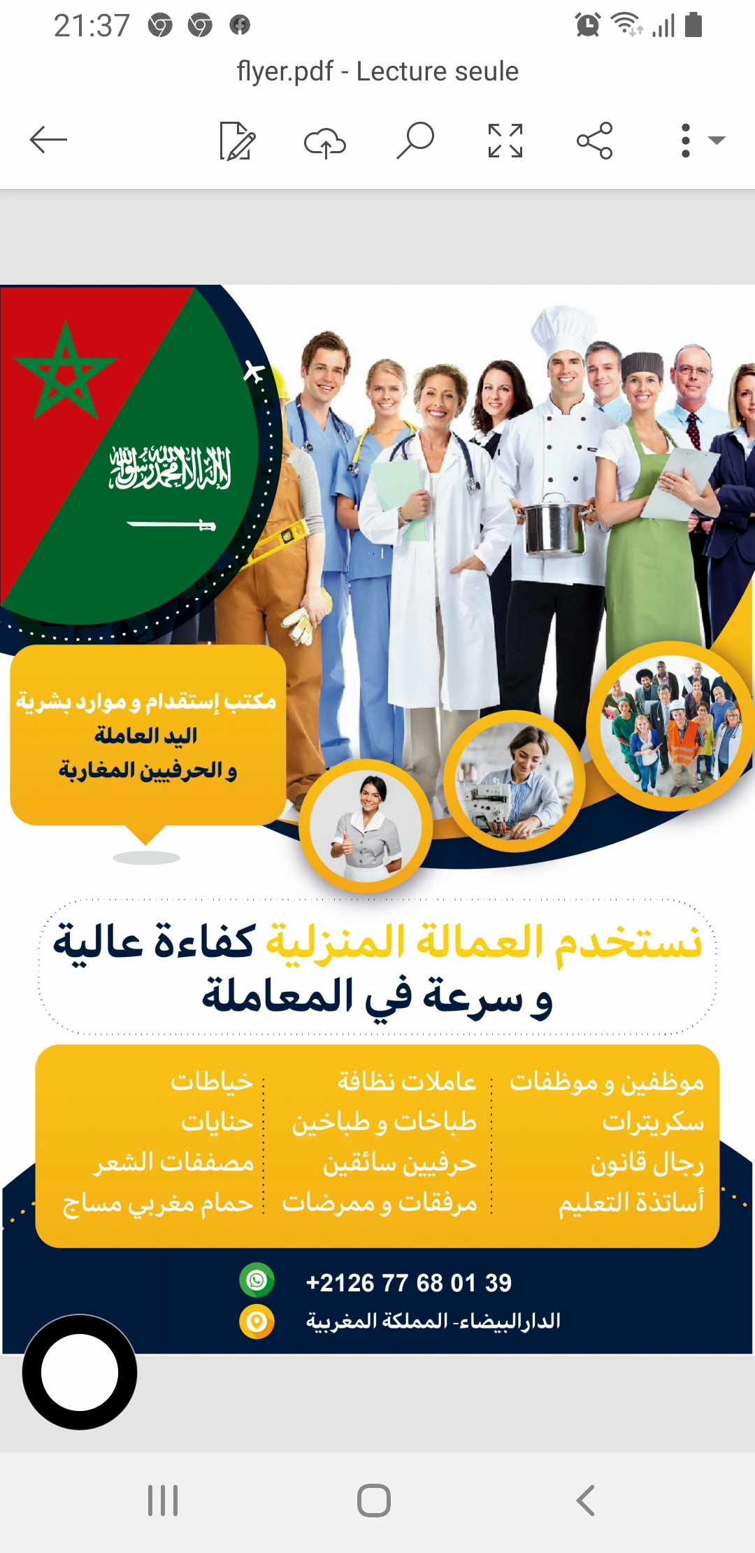 ‏مكتب استقدام مغاربة و مغربيات جميع المهن والحرفيين والحرفيات والموظفين والموظفات موارد بشرية عاملات خادمات وعمال مغاربة
